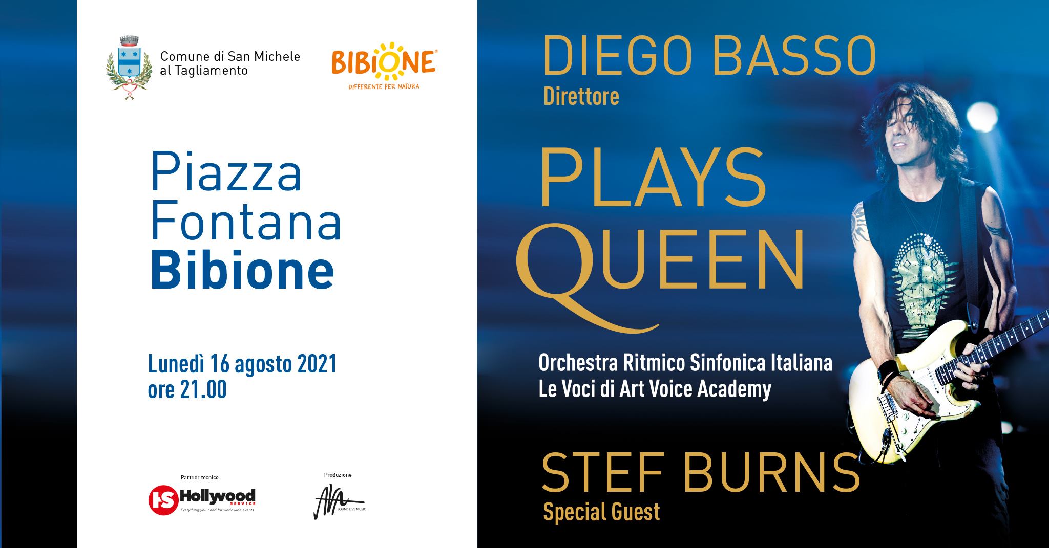 Piazza Fontana Bibione, ITDiego Basso Direttore D'Orchestra Plays Queen - Special Guest Stef Burns Orchestra Ritmico Sinfonica Italiana Le Voci di Art Voice Academy Lunedì 16 Agosto 2021, ore 21.00 Piazza Fontana, Bibione (VE) Evento promosso da...