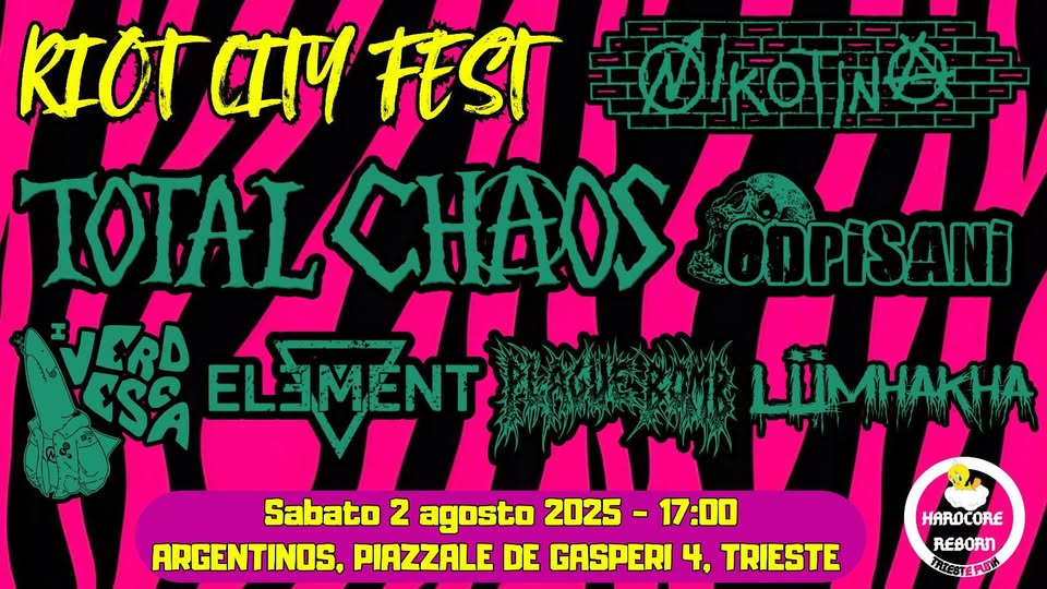 Ippodromo di MontebelloSabato/Sobota/Saturday/周六/Суббота/Sábado 02-08-2025, ore 17:00 ARGENTINOS, PIAZZALE DE GASPERI 4, (IPPODROMO), TRIESTE HARDCORE REBORN è affranta di presentare la RIOT CITY FEST! Bands & Info: ● TOTAL CHAOS (StreetPunk Since 1989 / USA) I Total...