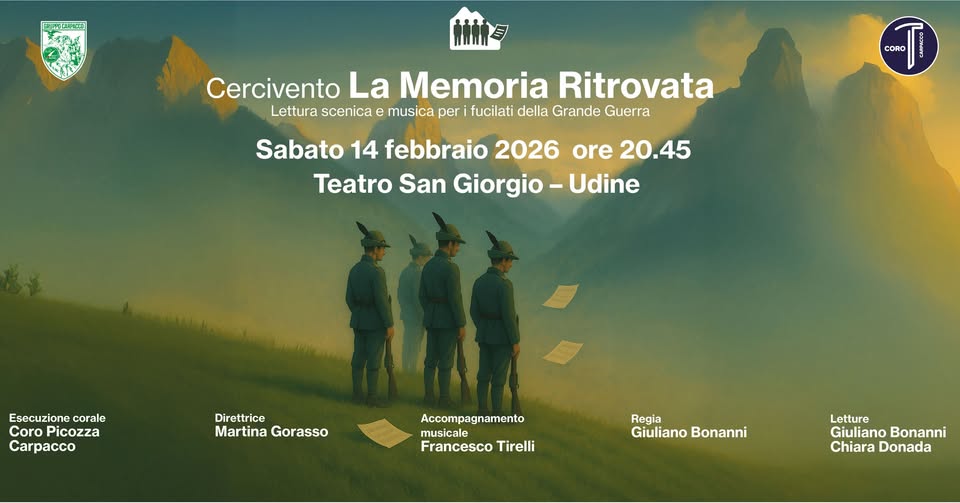 Teatro San Giorgio Teatro San GiorgioCERCIVENTO – LA MEMORIA RITROVATACi sono storie che non chiedono di essere ricordate,ma ascoltate.Sabato 14 febbraio 2026, al Teatro San Giorgio di Udine, va in scena Cercivento – La Memoria Ritrovata:uno spettacolo teatrale e...