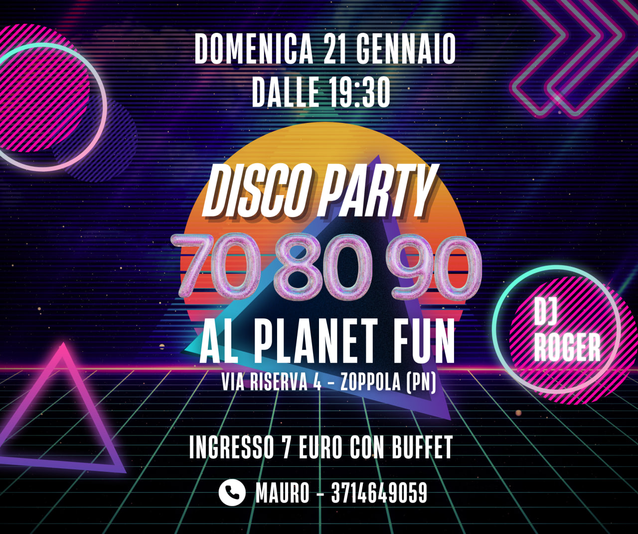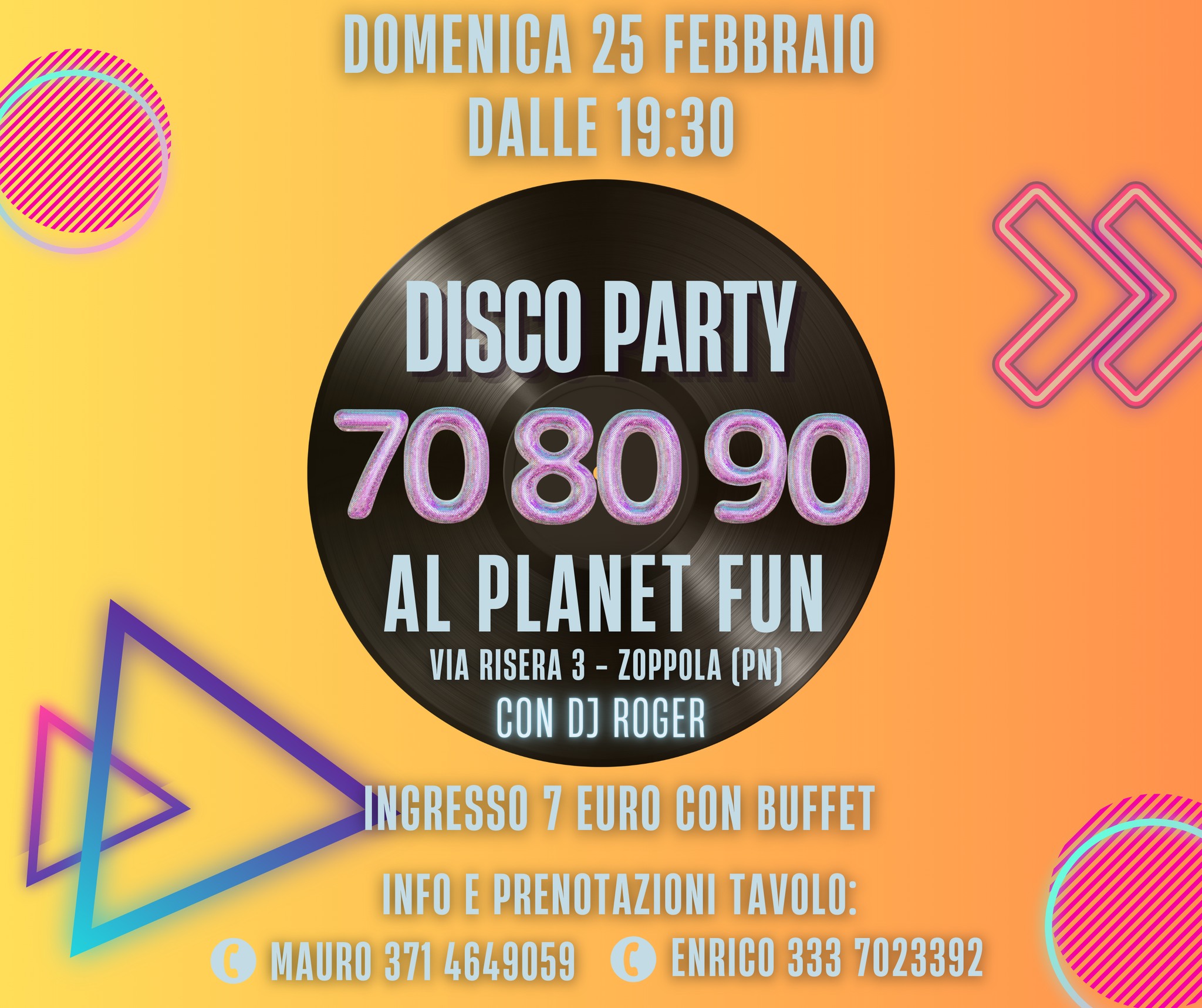 Planet Fun🪩 Disco Party '70 '80 '90🎶Domenica 25 febbraio vivi la magia degli anni '70 '80 e '90 al Planet Fun di Zoppola!!🕺🏼🪩💃🏼🚀Siete pronti a viaggiare indietro nel tempo con noi? Preparatevi per un'esperienza indimenticabile,...