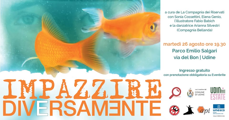 Via del Bon, 33100 Udine UD Via del Bon, 33100 Udine UD, ItaliaLa Compagnia dei Riservati è lieta di invitarvi a Impazzire diversamente con Sonia Cossettini, Elena Genio, l'illustratore Fabio Babich e la danzatrice Arianna Silvestri (Compagnia Bellanda) 📅martedì 26 agosto 🕢ore 19.30 📌Parco Emilio Salgari...